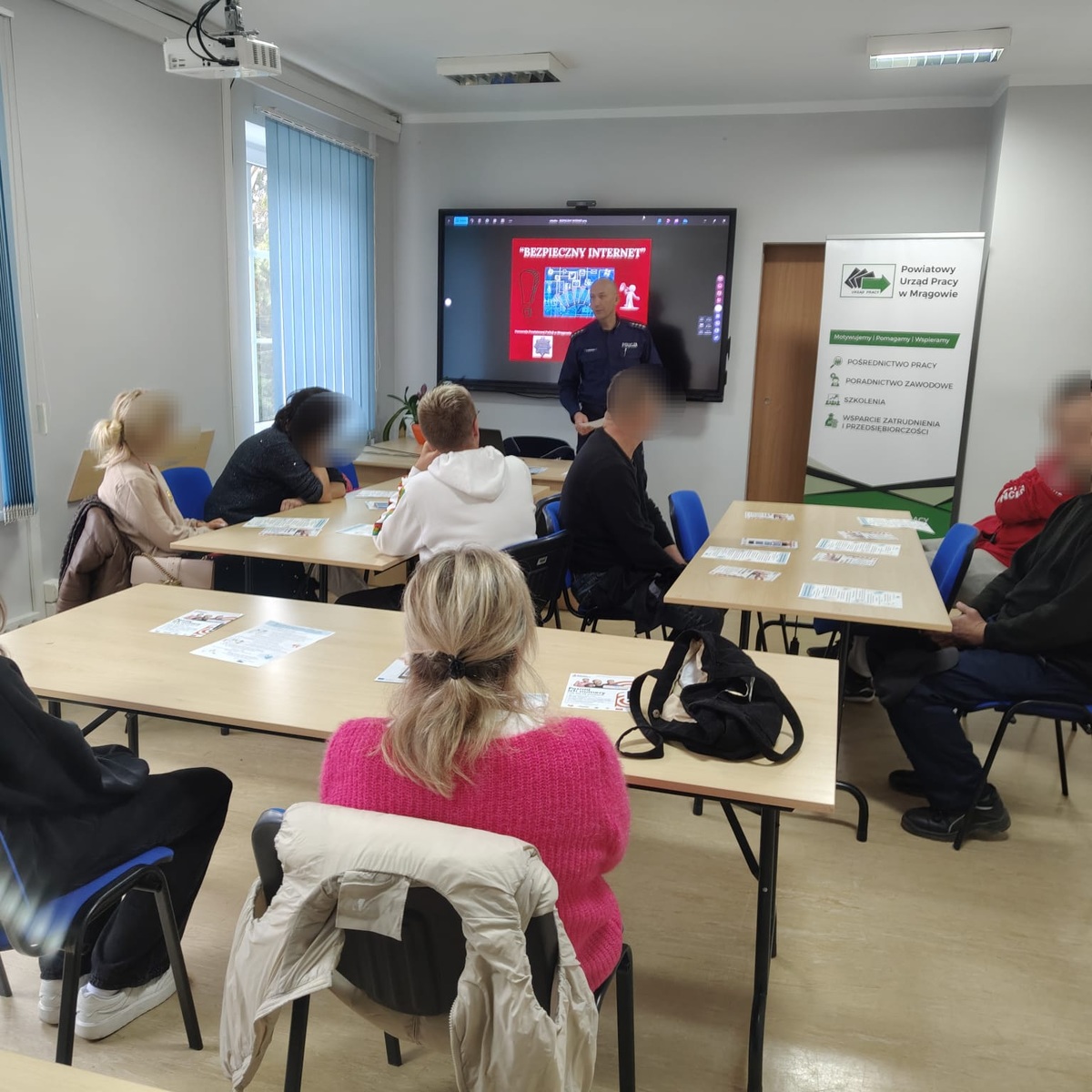 We wtorek (30.09.2025 r.) w Powiatowym Urzędzie Pracy w Mrągowie odbyło się spotkanie osób poszukujących zatrudnienia z funkcjonariuszem Komendy Powiatowej Policji w Mrągowie. Tematem przewodnim była bezpieczna aktywność w internecie- szczególnie w kontekście poszukiwania pracy.