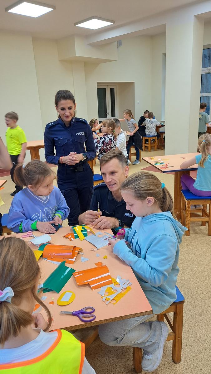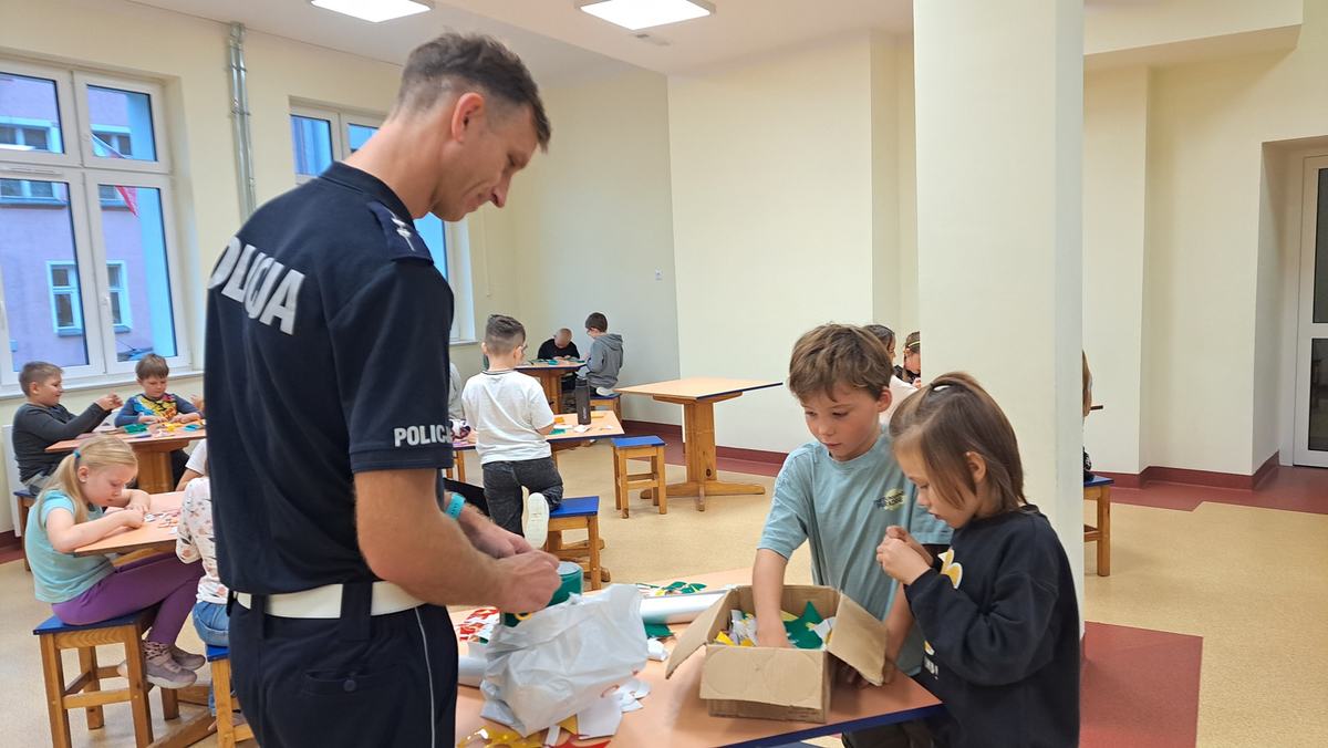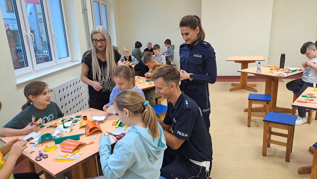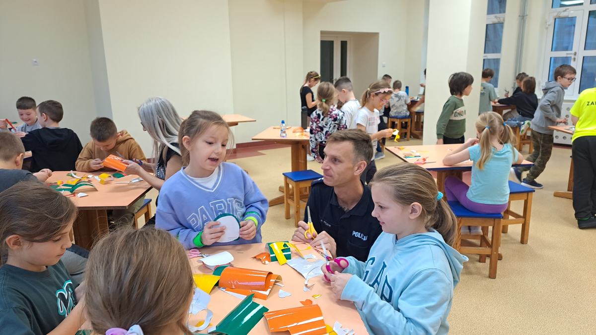 Mrągowscy funkcjonariusze regularnie odwiedzają szkoły, by rozmawiać z dziećmi i młodzieżą na różnorodne tematy związane z bezpieczeństwem. Tym razem ponownie zawitali do Szkoły Podstawowej nr 1 im. Mikołaja Kopernika w Mrągowie przy ul. Bohaterów Warszawy, gdzie wspólnie z uczniami wzięli udział w wyjątkowych, kreatywnych warsztatach.