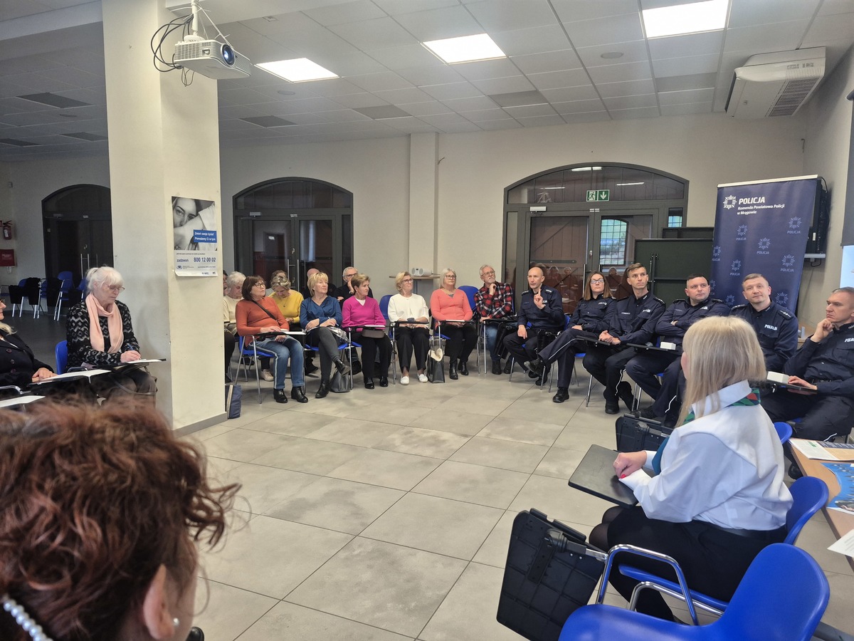 W roli prelegentów wystąpili specjaliści na co dzień stykający się z problematyką przemocy i zagrożeń społecznych. Asp. szt. Piotr Obiedziński, asystent ds. Nieletnich i Patologii KPP Mrągowo, zaprezentował możliwości prawne pomocy osobom dotkniętym przemocą domową. Daria Woźniel, przewodnicząca Zespołu Interdyscyplinarnego MOPS w Mrągowie, przedstawiła procedury pomocowe, podkreślając, jak ważna jest współpraca służb i instytucji w procesie przeciwdziałania przemocy w rodzinie. Z kolei Małgorzata Jagiełło, kierownik Biura Terenowego ZUS w Mrągowie, zwróciła uwagę na sytuację osób starszych, które również często doświadczają różnych form przemocy, a ze względu na swoją zależność między innymi finansową nie zawsze potrafią lub mogą poprosić o pomoc.