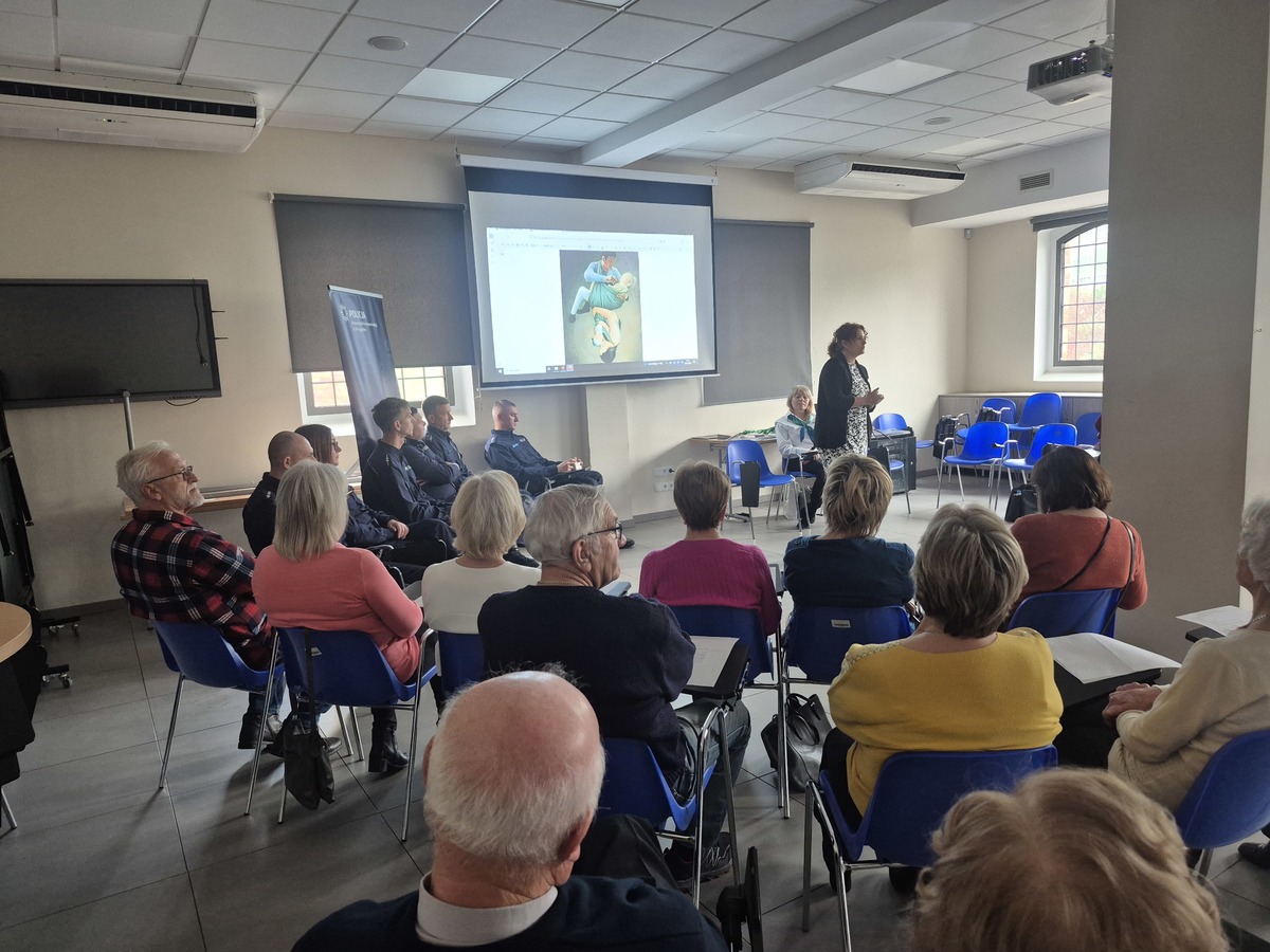 W czwartek (20.11.2025 r.) w Mrągowskim Centrum Aktywności Lokalnej odbyła się debata społeczna „Porozmawiajmy o bezpieczeństwie – możesz mieć na nie wpływ. Przemoc nie ma wieku. STOP przemocy”. Spotkanie było okazją do szerokiej dyskusji na temat różnych form przemocy- fizycznej, psychicznej, ekonomicznej czy cyfrowej, podkreślając, że może ona dotknąć osoby w każdym wieku, niezależnie od miejsca zamieszkania czy sytuacji życiowej. Uczestnicy debaty dowiedzieli się, jak rozpoznawać sygnały świadczące o krzywdzeniu, gdzie szukać pomocy oraz jak reagować, aby skutecznie przerwać spiralę przemocy. Szczególnie akcentowano znaczenie wczesnego reagowania i zaangażowania świadków, którzy często mogą odegrać kluczową rolę w ochronie osób zagrożonych.