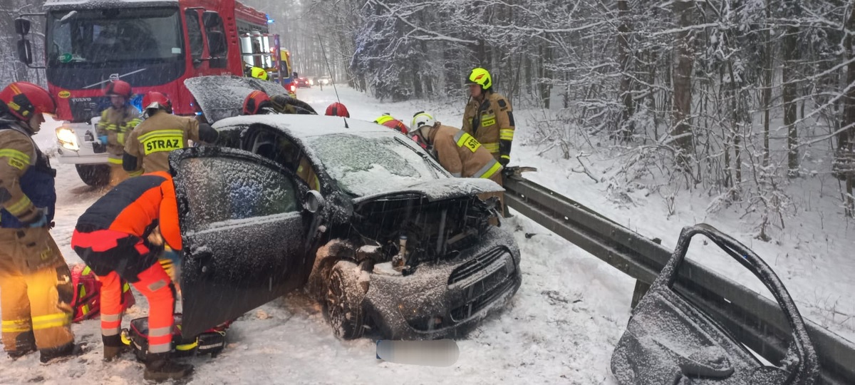 We wtorek (30.12.2025 r.) przez Polskę przeszły zawieje i zamiecie śnieżne. W części województwa warmińsko-mazurskiego ruch drogowy został sparaliżowany. Osoby, które przejeżdżały przez powiat mrągowski również musiały zmierzyć się z nie lada wyzwaniem i stawić czoła bardzo trudnym warunkom drogowym. Na drogach zalegała gruba warstwa śniegu, a jezdnie były śliskie. Doprowadziło to do 9 kolizji drogowych oraz niestety 1 wypadku, w którym ucierpiała 41-letnia kobieta. Ze wstępnych ustaleń policjantów oraz relacji świadków wynika, że 41-letnia mieszkanka Elbląga, kierując samochodem osobowym marki Citroën na drodze wojewódzkiej nr 610 jadąc w kierunku Rucianego Nidy od strony Dobrego Lasku, po zakończeniu manewru wyprzedzania straciła panowanie nad pojazdem, zjechała na przeciwległy pas ruchu i czołowo zderzyła się z pojazdem ciężarowym marki Scania z naczepą, jadącym z naprzeciwka. Kobieta podróżowała z 14-letnim pasażerem, który nie doznał obrażeń. Kierująca została przetransportowana karetką pogotowia do szpitala. Droga wojewódzka nr 610 na wskazanym odcinku przez dłuższy czas była zablokowana.