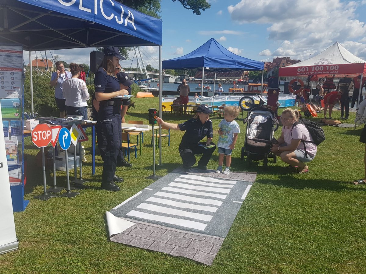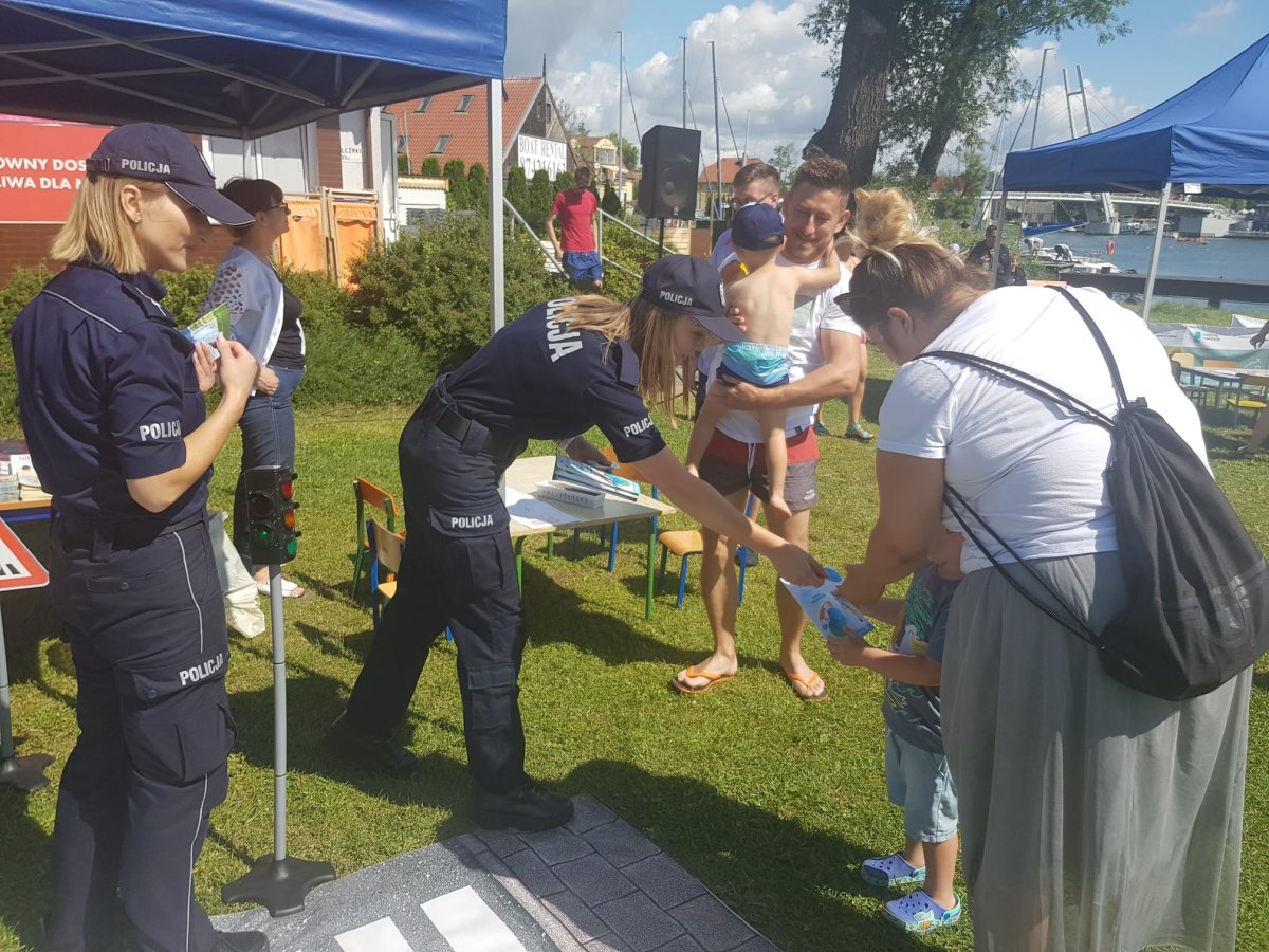 Na plaży miejskiej w Mikołajkach z inicjatywy Państwowego Gospodarstwa Wodnego Wody Polskie odbył się piknik edukacyjny pod hasłem "Odpoczywam nad woda koniecznie, bo tam czuję się bezpiecznie". W przedsięwzięciu uczestniczyli również policjanci.