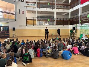 Dzielnicowi z Komendy Powiatowej Policji w Mrągowie spotkali się z uczniami klas I-III oraz IV-VI Szkoły Podstawowej nr 4 w Mrągowie, gdzie omówili zasady bezpieczeństwa w ruchu drogowym oraz konsekwencje nieprzestrzegania przepisów.