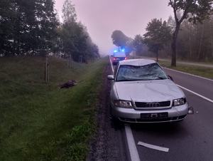 Konsekwencje zderzenia z dzikim zwierzęciem mogą być tragiczne. Na szczęście w przypadku 57-letniego kierowcy skończyło się jedynie na uszkodzeniu pojazdu. Niestety zwierzę poważnie ucierpiało.