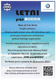 W ramach akcji informacyjno-edukacyjnej pn. „Kręci mnie bezpieczeństwo w lecie” został ogłoszony konkurs plastyczno-filmowy pn. „LETNI przeWODNIK", którego tematem jest zobrazowanie bezpiecznego sposobu zachowania osób przebywających na wodach i terenach przywodnych, uprawiających różne formy rekreacji w górach oraz podczas wypraw rowerowych i pieszych, ze szczególnym uwzględnieniem bezpieczeństwa tych osób korzystających z różnych aktywnych form wypoczynku podczas sezonu letniego.